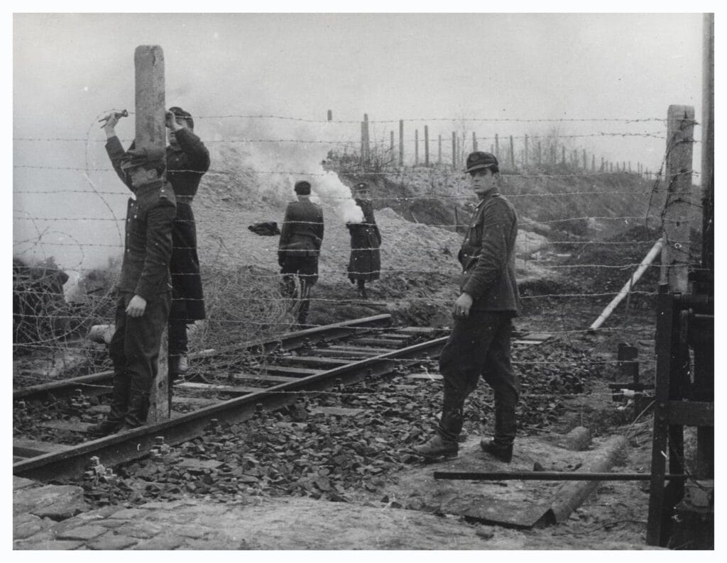 December 1961.The East German police tear up train tracks leading to West Berlin after 25 people escaped across the border. From the booklet “A City Torn Apart: Building of the Berlin Wall.”, Credits: wikimedia commons